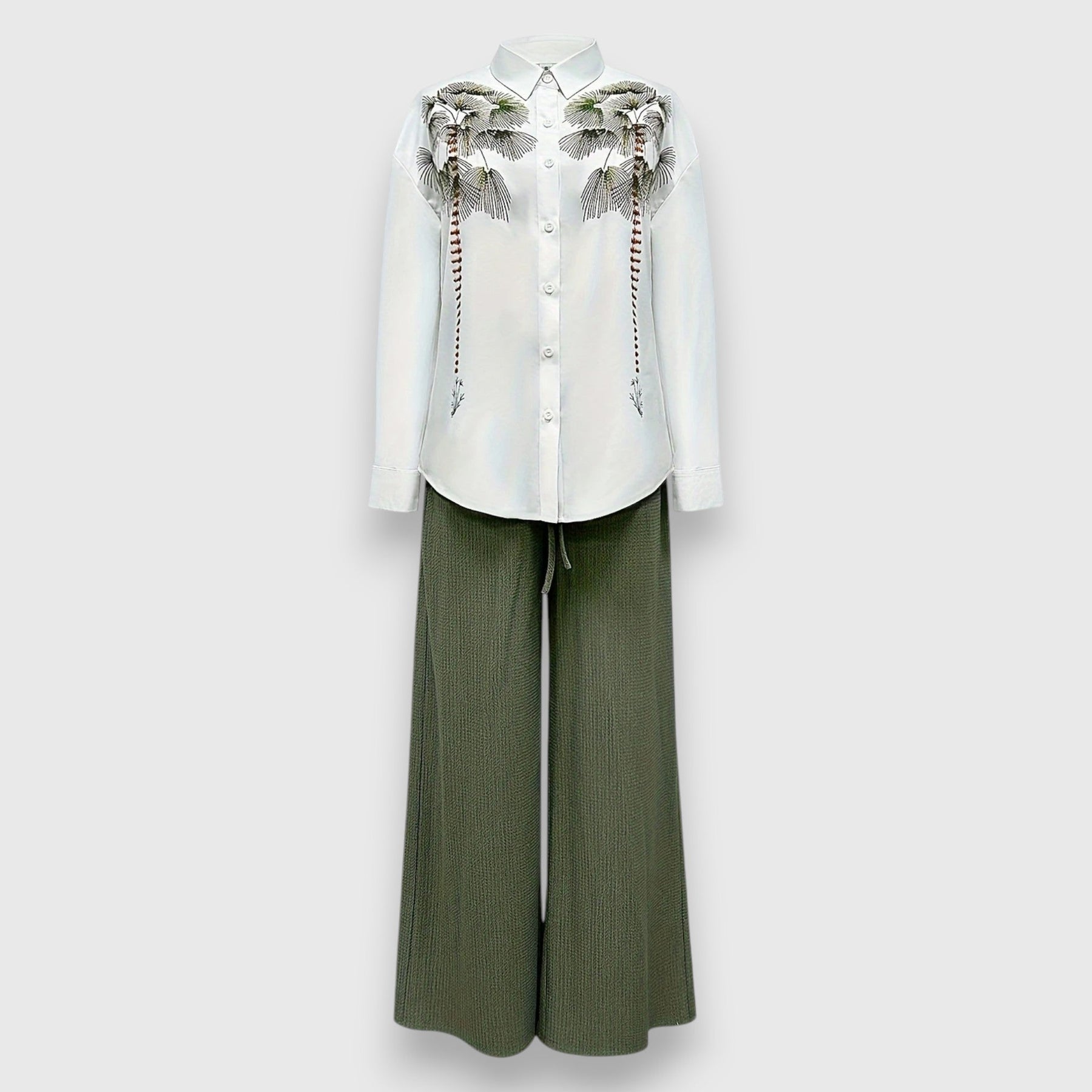 The Nirvana set combines an elegant blouse with a fine floral design and flowing wide-leg pants – perfect for stylish days. The lightweight fabric and high demands give the entire set a feminine, sophisticated touch.